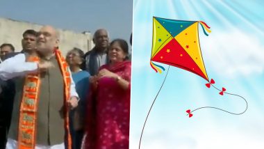 குஜராத் மாநிலத்தை பூர்வீகமாக கொண்ட மத்திய உள்துறை அமைச்சர் அமித் ஷா (Amit Shah, Ministry of Home Affairs), இன்று அகமதாபாத் நகரில் உள்ள வேஜல்பூர் பகுதியில், வீட்டின் மொட்டை மாடியில் தனது தொண்டர்களுடன் பட்டம் விட்டு மகிழ்ச்சியடைந்தார்.