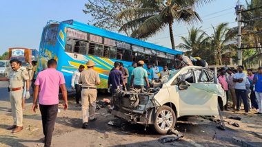 ஏப்ரல் 15, தும்கூர் (Karnataka News): கர்நாடக மாநிலத்தில் உள்ள தும்கூர் மாவட்டம் (Tumkur, Karnataka), தேசியநெடுஞ்சாலை எண் 48-ல் இன்று காலை ஹிரேஹள்ளி (Hirehalli) பகுதியில் தும்கூரில் இருந்து பெங்களூர் (Tumkuru to Bangalore) நோக்கி பயணம் செய்த கார் வந்தது. எதிர்திசையில் சிராவில் இருந்து தும்கூர் வழியே பெங்களூர் நோக்கி தனியார் பேருந்து பயணம் செய்தது.