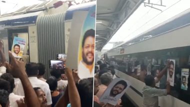 ஏப்ரல் 26 , சோரனுர் (Kerala News): கேரளா மாநிலத்தில் உள்ள பாலக்காடு (Palakkad, Kerala) தொகுதியின் நாடாளுமன்ற உறுப்பினர் வி.கே ஸ்ரீகண்டன் (VK SreeKandan). இவரின் ஆதரவாளர்களின் சிலர் சோரனுர் இரயில் (Shoranur) நிலையத்திற்கு வருகை தந்த வந்தே பாரத் இரயிலின் மீது தங்களது நாடாளுமன்ற உறுப்பினரின் புகைப்படத்தை ஒட்டியுள்ளனர்.