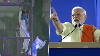 அப்போது, இளம்பெண் ஒருவர் பிரதமரிடம் பேச வேண்டும் என்ற கோரிக்கையை முன்வைத்து, அங்கு அமைக்கப்பட்டு இருந்த மின்கோபுரம் மீது ஏறினார். இதனைக்கண்ட மோடி, பெண்மணியை இறங்கிவர அறிவுறுத்தினார்.