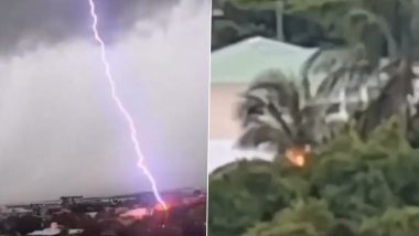 இந்நிலையில், வானில் இருந்து கிளம்பிய மின்னல் சுமார் 2 முதல் 4 நொடிகள் வரை நகரத்தின் நடுவே இருந்த மரத்தை தாக்கியது. இந்த வீடியோ வைரலாகி வருகிறது.
