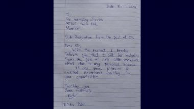பணியில் இருந்து விலகினார்: இந்த நிலையில், சமீபத்தில் இவர் தனது வேலையில் இருந்து சொந்த காரணங்களுக்காக விலகிக் கொண்டதாக தெரியவருகிறது. இதனையடுத்து, தனது கைப்பட அவர் தனது நிறுவனத்தின் முதன்மை இயக்குனருக்கு, ராஜினாமா கடிதம் ஒன்றை எழுதி உள்ளார். தற்போது, அந்த கடிதம் (Resignation Letter) வெளியாகி வைரலாகி வருகிறது.