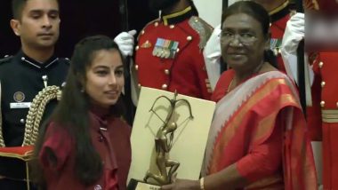 #WATCH | Delhi: Para-archer Sheetal Devi received the Arjuna Award from President Droupadi Murmu at the National Sports Awards. pic.twitter.com/jwkFEd2CjH